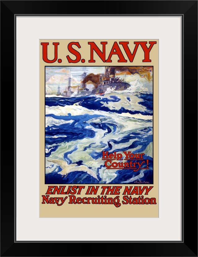 <p>Vintage World War I poster of battleships at sea. It reads, U.S. Navy, Help Your Country! Enlist In The Navy, Navy Recruiting Station.</p>