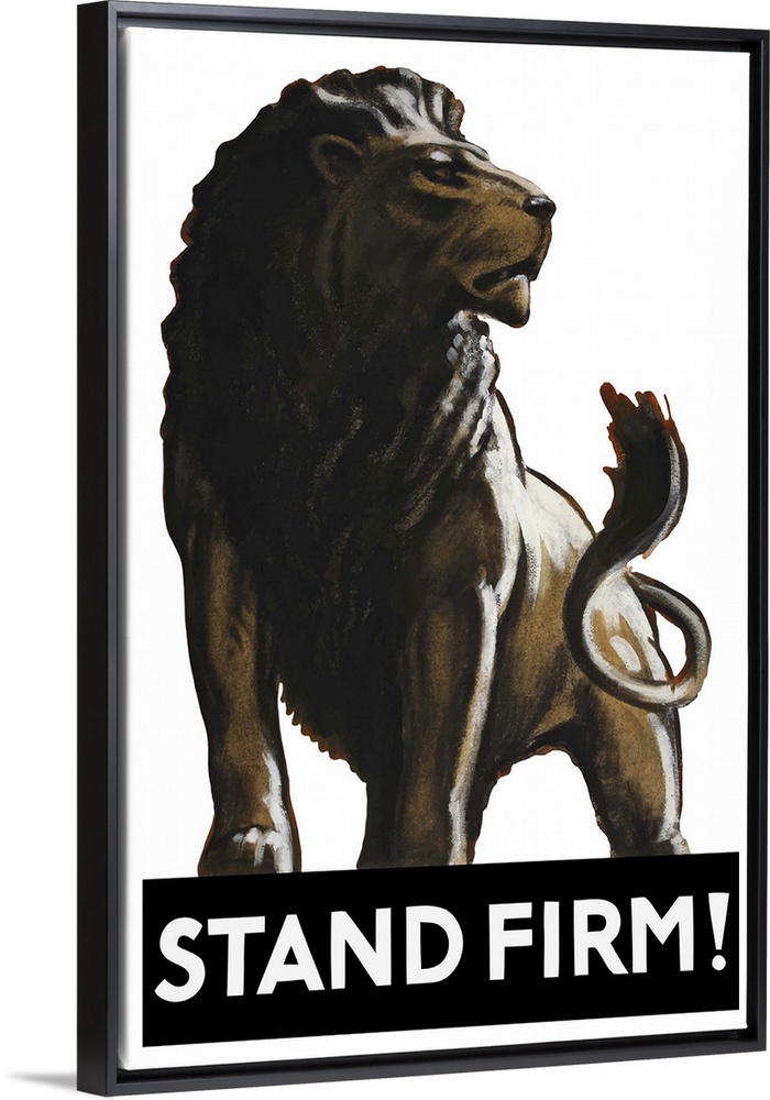 <p>Vintage World War II poster of a male lion. It reads: Stand Firm. Original by Tom Purvis.</p>