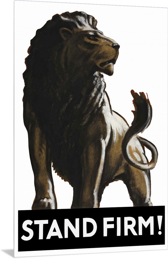 <p>Vintage World War II poster of a male lion. It reads: Stand Firm. Original by Tom Purvis.</p>