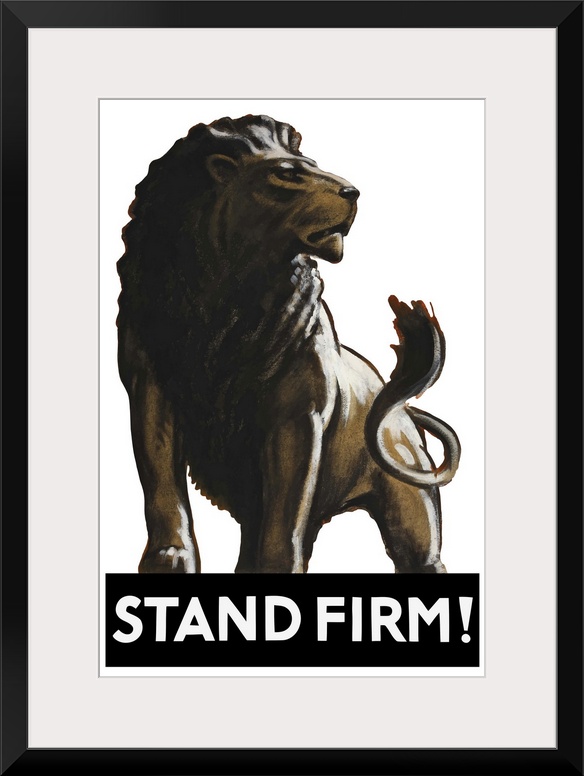 <p>Vintage World War II poster of a male lion. It reads: Stand Firm. Original by Tom Purvis.</p>