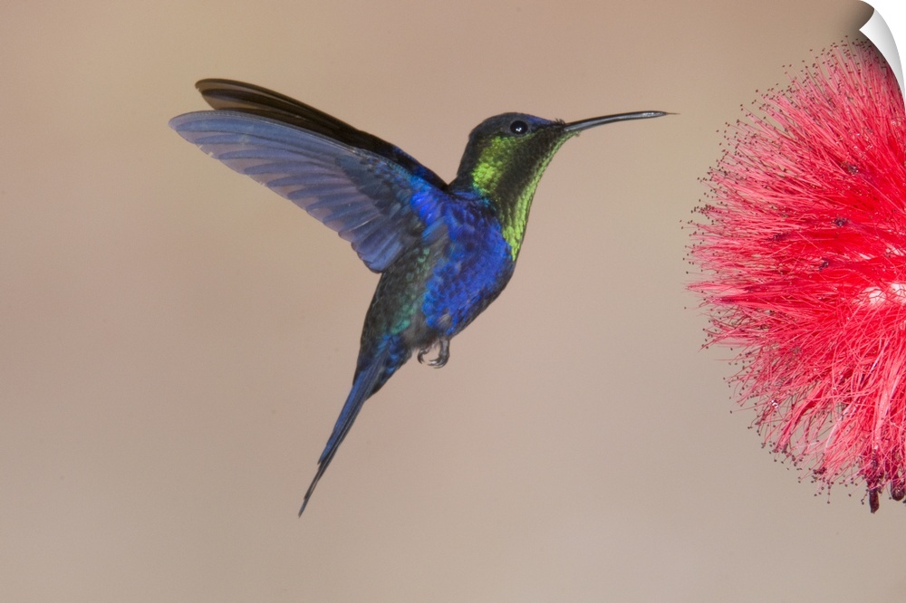 <p>violet-crowned woodnyph Thalurania colombica, male, high-speed flash, bird, costa rica, feeding</p>