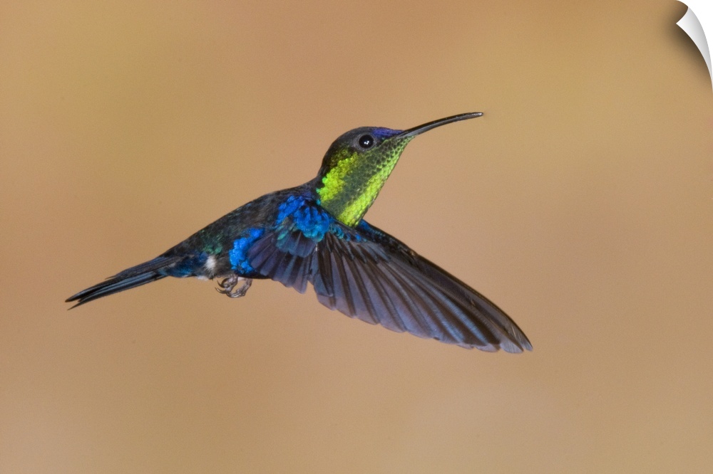 Violet-crowned Woodnymph (Thalurania colombica) hummingbird male flying, Costa Rica