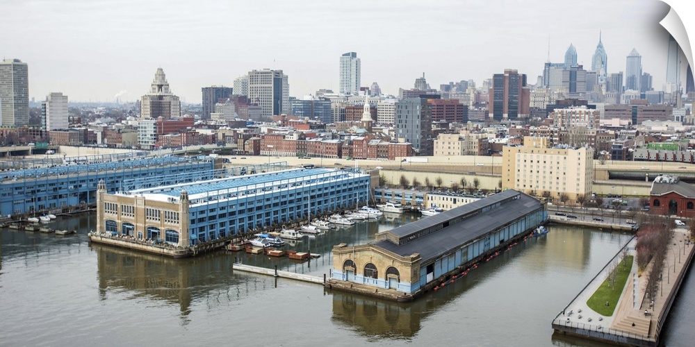 <p>Docks on the water with skyscrapers in the city of Virginia Beach in the distance, Virginia.</p>