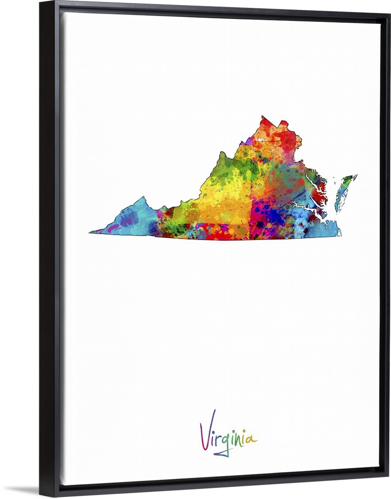 <p>Contemporary artwork of a map of Virginia made of colorful paint splashes.</p>