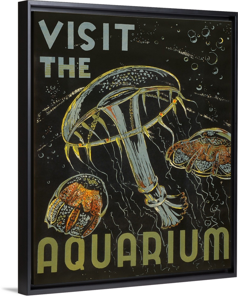 <p>Visit the aquarium. Poster promoting aquariums as places to visit, showing jellyfish. Library of Congress, Prints and Photographs Division, WPA Poster Collection.</p>
