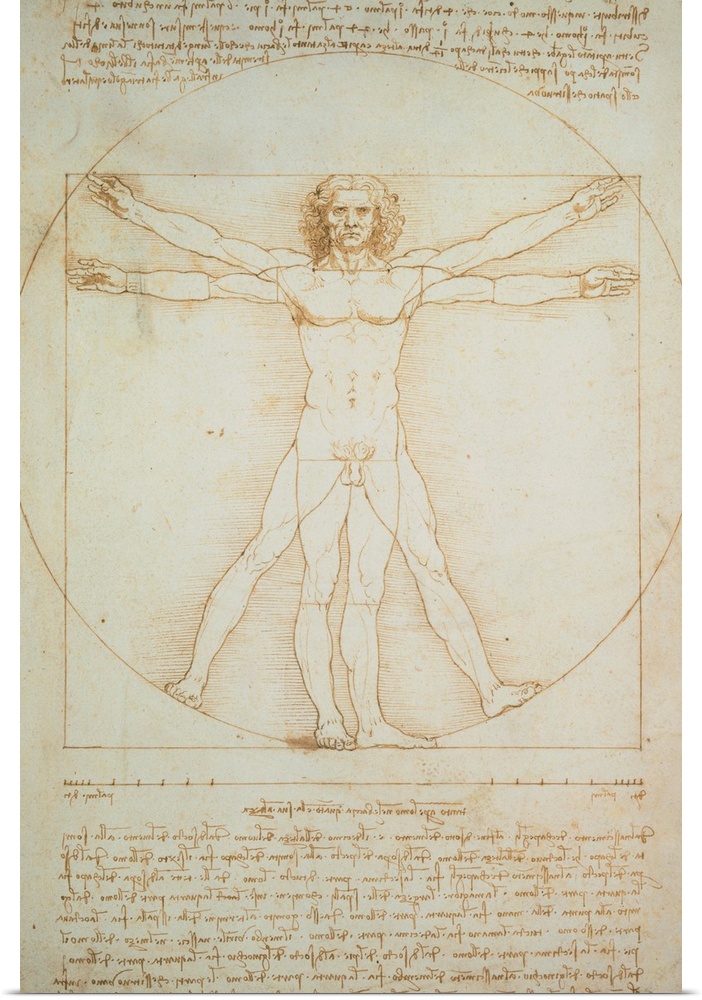 <p>Leonardo da Vinci, Vitruvian man - the proportions of the human body according to Vitruvius, 1490, 15th Century, metal point, pen and ink, touches of watercolor, Italy, Veneto, Venice, Accademia Art Galleries (49824) Everett Collection\Mondadori Portfolio</p>