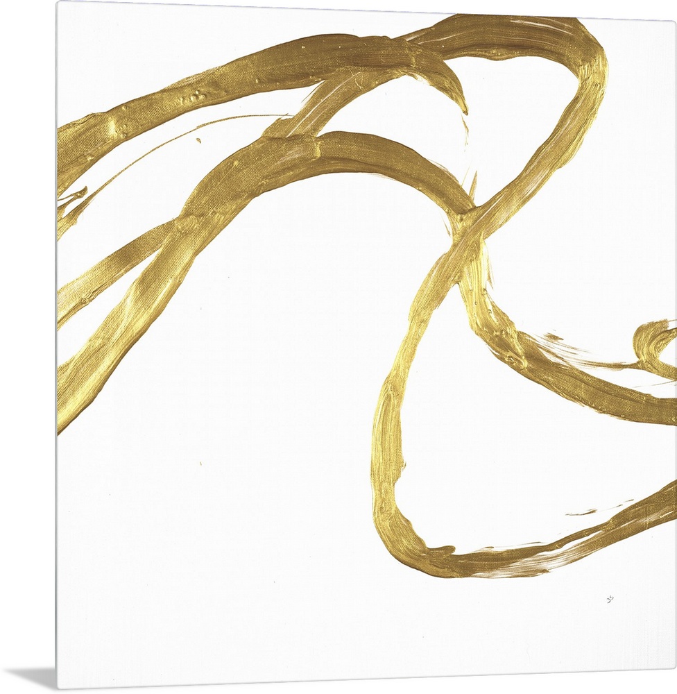 <p>Square minimalist abstract artwork with metallic gold brushstrokes on a white background.</p>