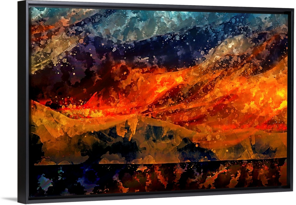 <p>An eruption of warm colors wrestling cool shades in this abstract artwork.</p>