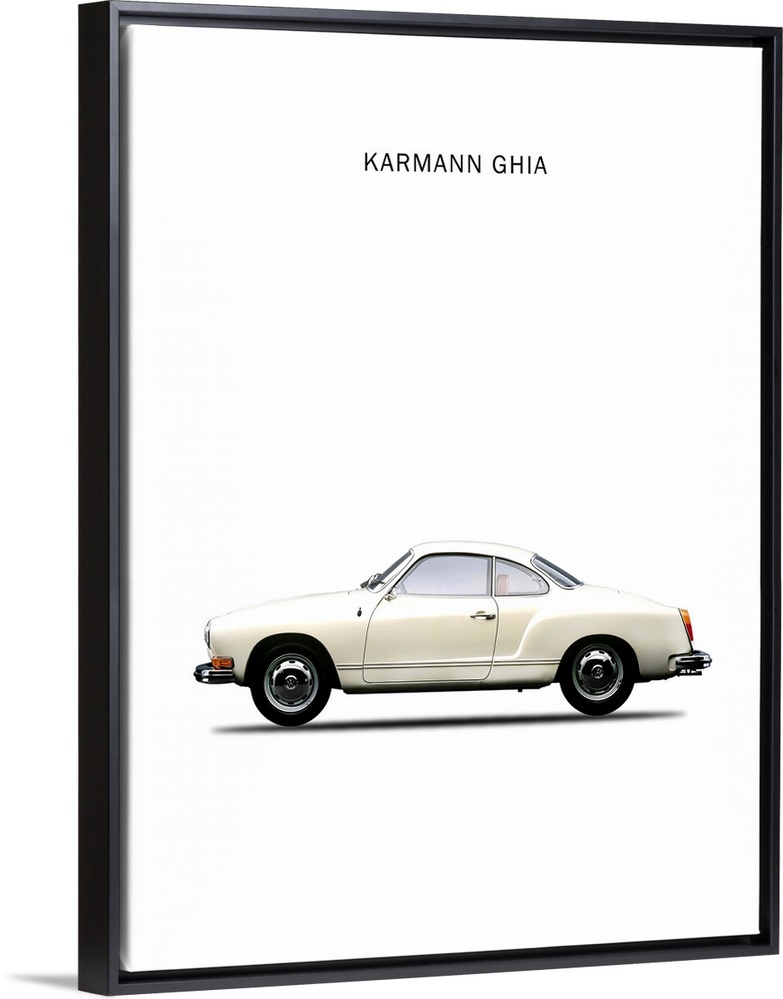 <p>Photograph of a white VW Karmann Ghia 1970 printed on a white background</p>