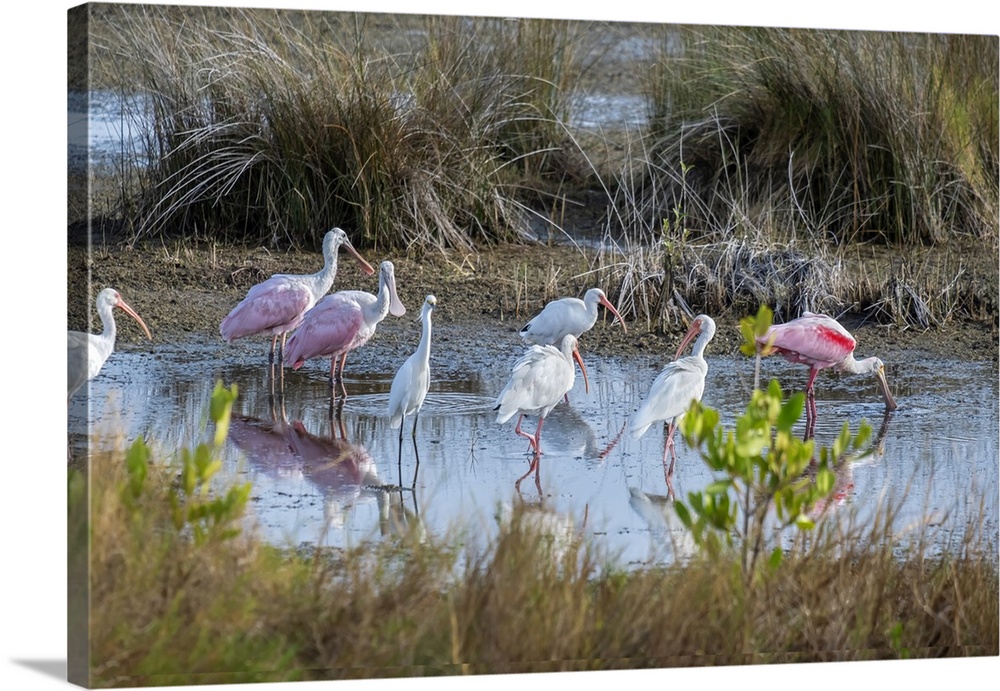 <p>Wading birds in marsh, Merritt Island National Wildlife Refuge, Florida.</p>