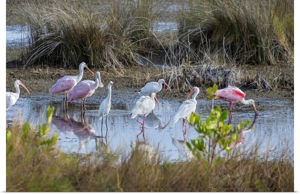 <p>Wading birds in marsh, Merritt Island National Wildlife Refuge, Florida.</p>