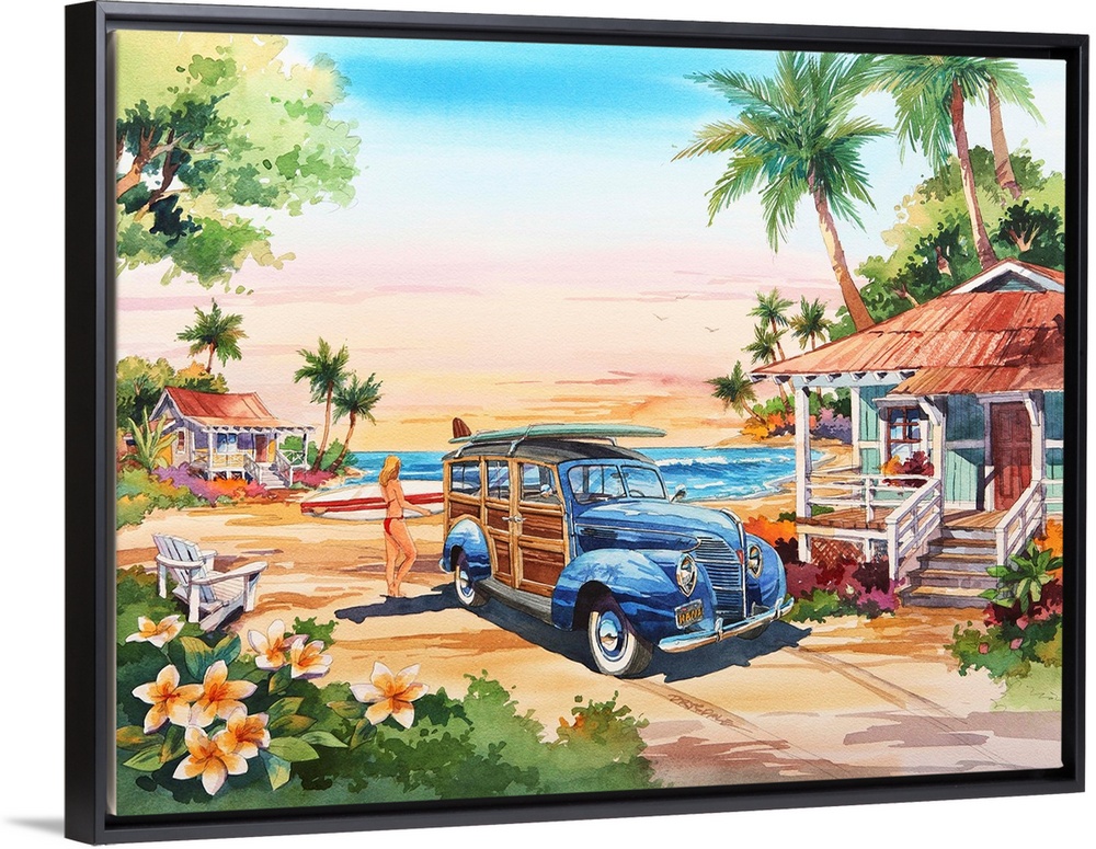 Art Decorative Art Bill Drysdale Beaches Painting Transportation Car Classic and Vintage Cars Watercolor