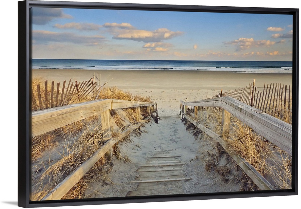 <p>A photograph of an idyllic scene with a wooden walkway leading down to a sandy secluded beach.</p>
