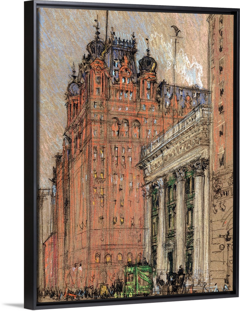 <p>Waldorf Astoria Hotel, showing the hotel at its original 34th St. and Fifth Avenue location. Chalk and crayon drawing over pencil, 29.3 x 23.1 cm, circa 1904-1908.</p>