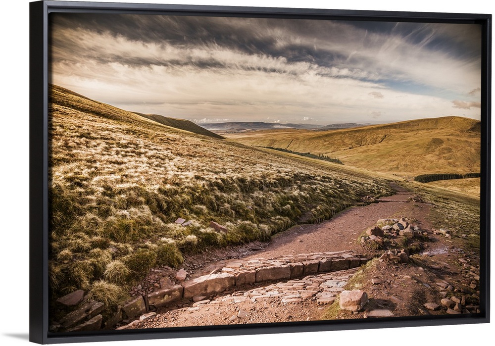 <p>UK, Wales, Great Britain, Brecon Beacons National Park, Mountain trail just after sunrise.</p>