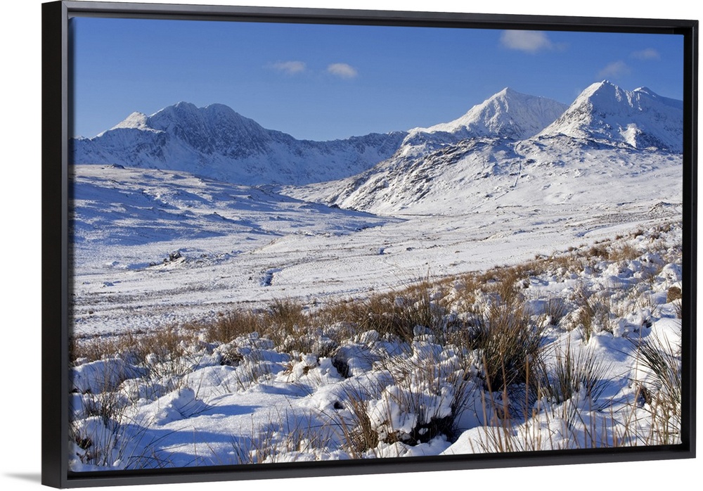 <p>Wales, Gwynedd, Snowdonia. View over the frozen landscape towards the Snowdon Horseshoe.</p>