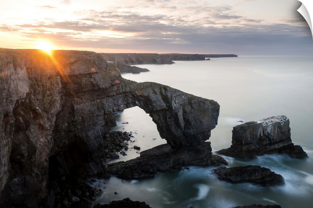 <p>UK, Wales, Great Britain, Pembrokeshire Coast National Park, Pembrokeshire, Dawn at Green Bridge of Wales.</p>