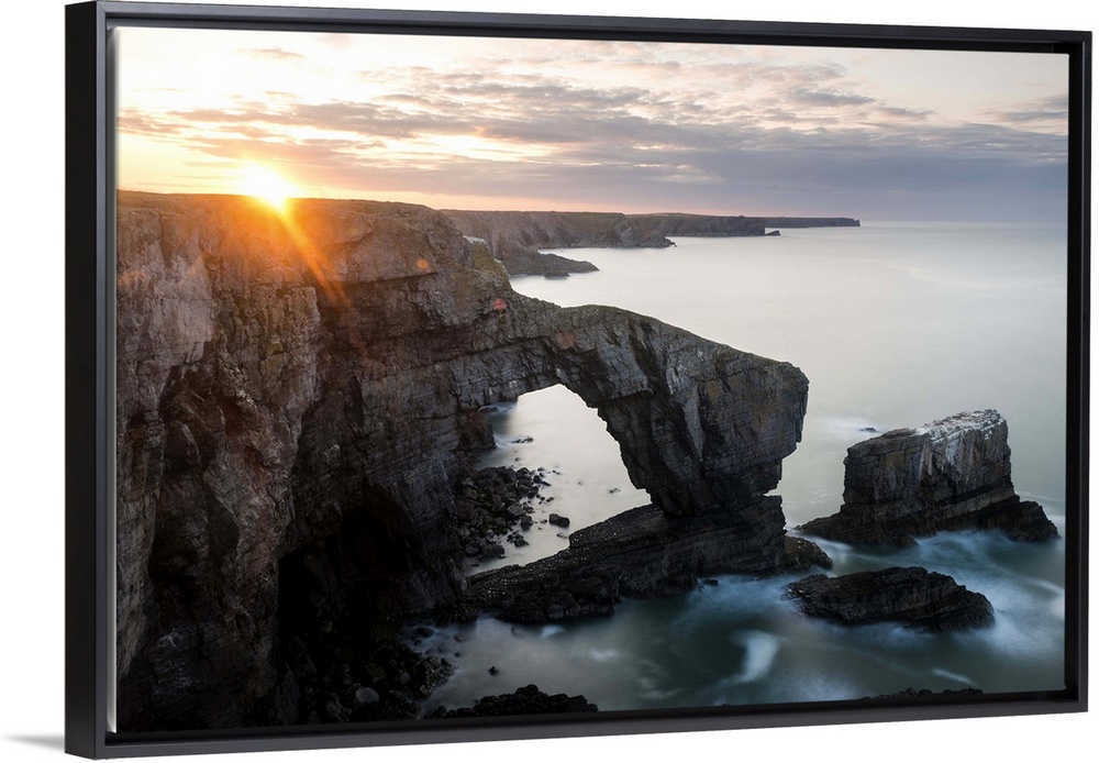 <p>UK, Wales, Great Britain, Pembrokeshire Coast National Park, Pembrokeshire, Dawn at Green Bridge of Wales.</p>