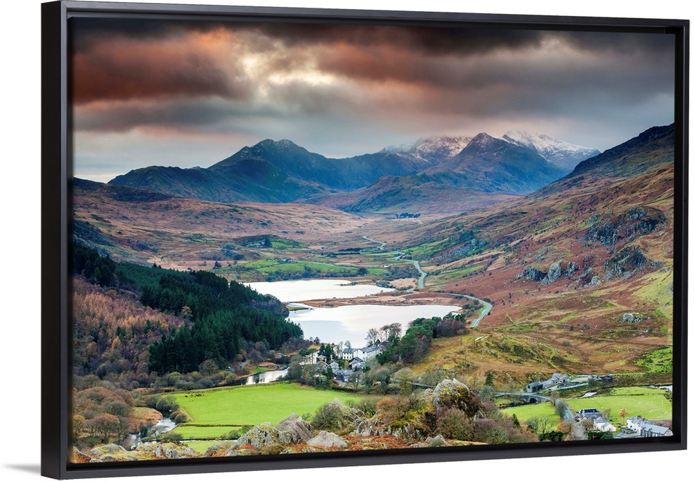 <p>UK, Wales, Great Britain, Snowdonia National Park, Gwynedd, Gwynedd, View over Capel Curig with Mount Snowdon in the background.</p>