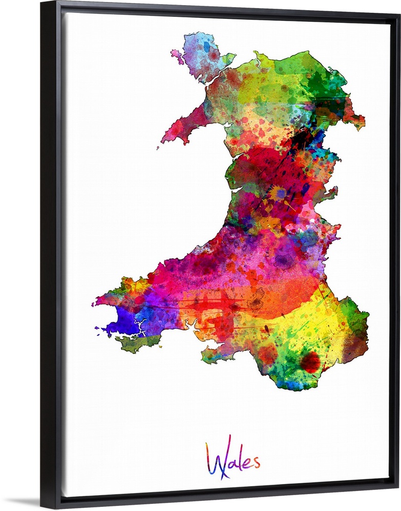 <p>Watercolor art map of the country Wales against a white background.</p>