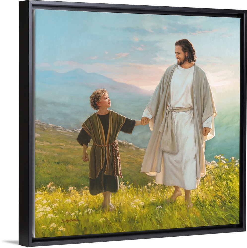 <p>Christ and child walking in a beautiful meadow.</p>