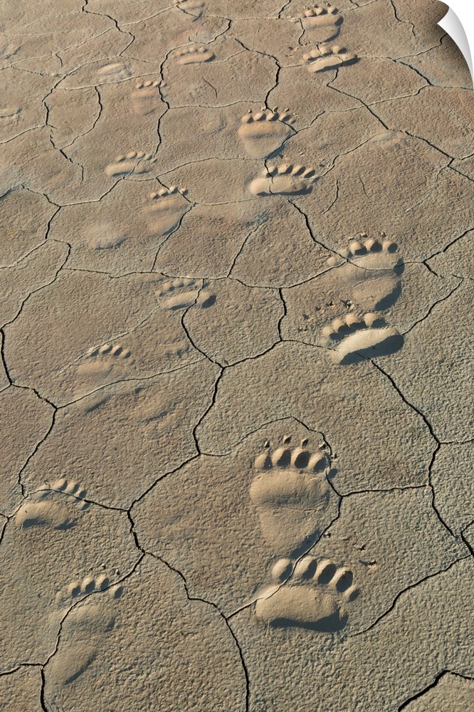 <p>Footprints of adult and cub coastal grizzly bears in Lake Clark National Park, Alaska.</p>