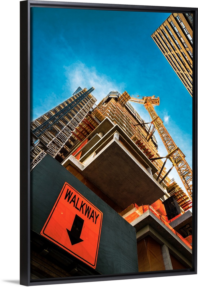 <p>View from the street, looking up at construction on a skyscraper.</p>