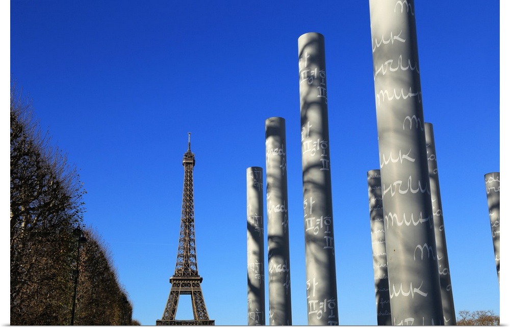 <p>Wall of Peace and Eiffel Tower, Paris, France</p>