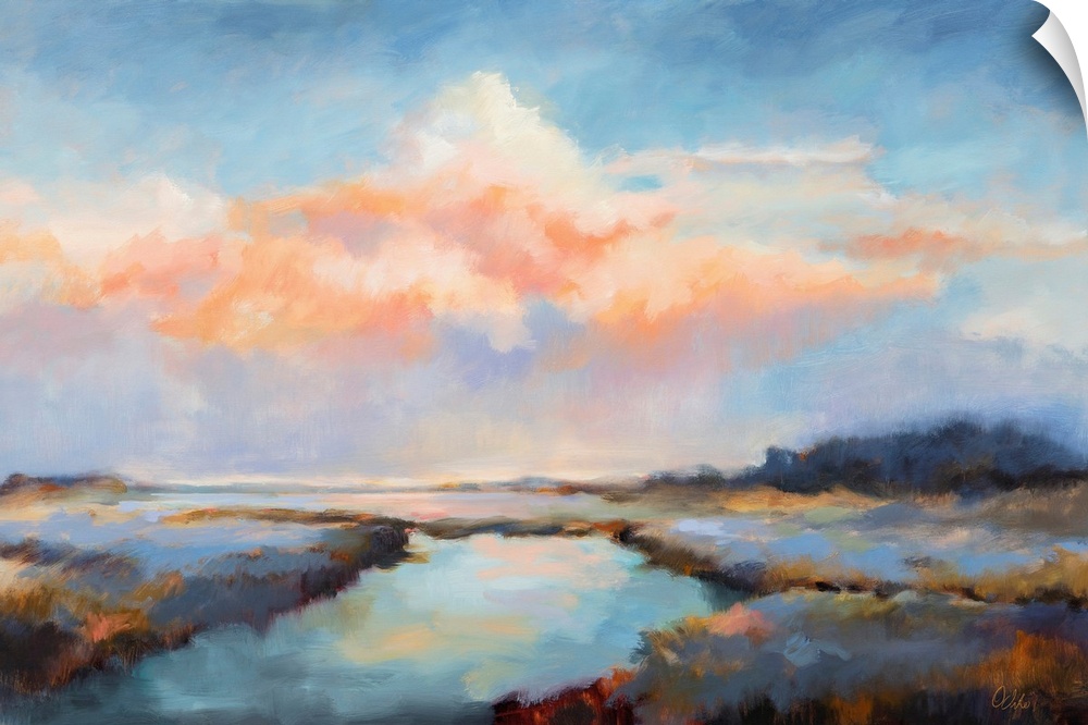 Art Transitional Blue Wall Art Contemporary Art Landscapes Marsh and Swamp River, Creek and Stream Painting