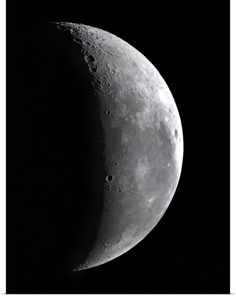 <p>Waning crescent Moon. As the Moon orbits the Earth, the amount of sunlight on its visible hemisphere varies in a regular 28-day cycle. This is a waning crescent Moon, 24 days into the cycle. As the cycle progresses, darkness encroaches (from left) as the lunar night falls. Photographed in the southern hemisphere.</p>