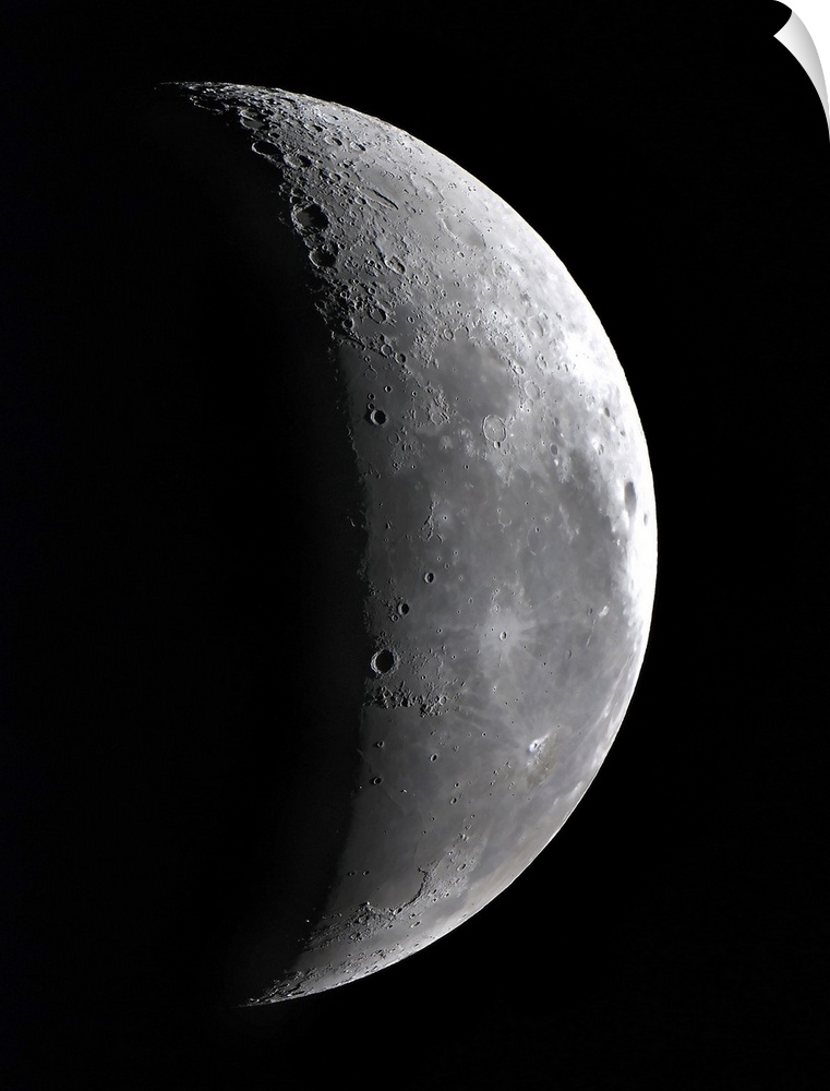 <p>Waning crescent Moon. As the Moon orbits the Earth, the amount of sunlight on its visible hemisphere varies in a regular 28-day cycle. This is a waning crescent Moon, 24 days into the cycle. As the cycle progresses, darkness encroaches (from left) as the lunar night falls. Photographed in the southern hemisphere.</p>