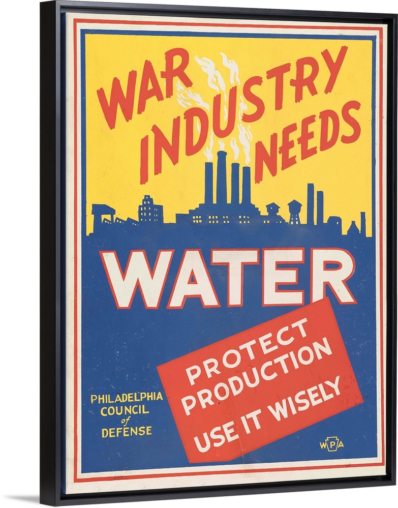 <p>War industry needs water. Protect production. Use it wisely. Poster promoting conservation of water for the war effort. Library of Congress, Prints and Photographs Division, WPA Poster Collection.</p>