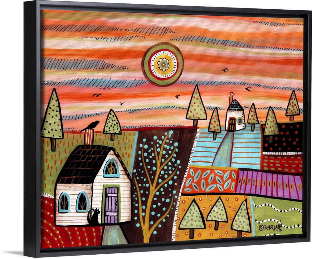 <p>A contemporary folk art style painting of a rolling countryside landscape.</p>