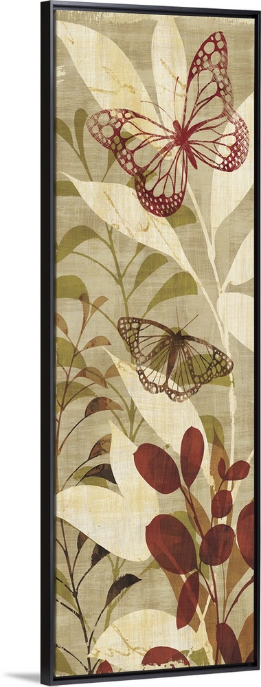 <p>Contemporary artwork of butterfly outlines against a background of flowers and plants.</p>