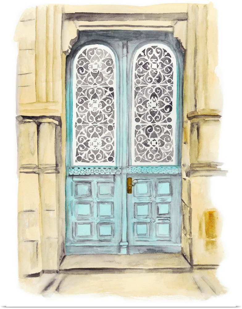 Architecture Door Art Blue Wall Art Decorative Art Naomi McCavitt Painting Watercolor