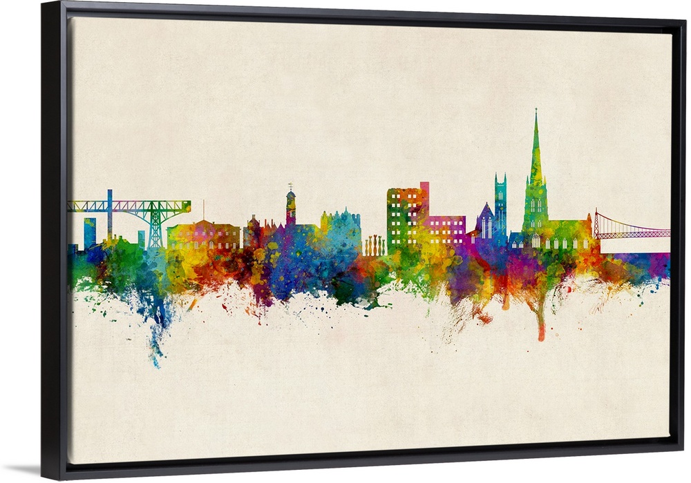 <p>Watercolor art print of the skyline of Warrington, England, United Kingdom</p>