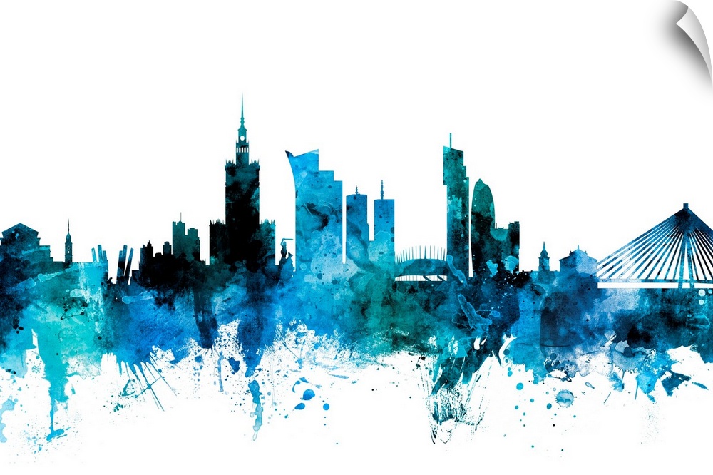 <p>Watercolor art print of the skyline of Warsaw, Poland.</p>
