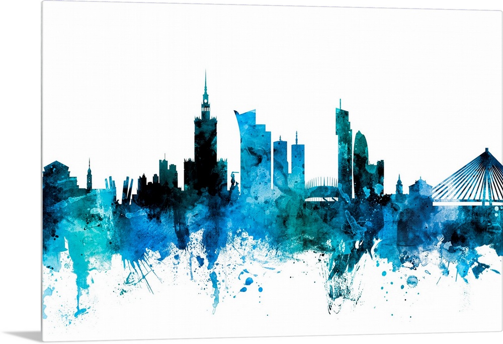 <p>Watercolor art print of the skyline of Warsaw, Poland.</p>