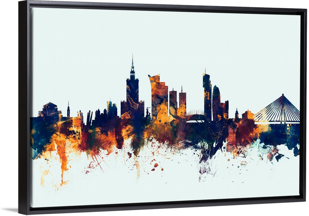 <p>Watercolor art print of the skyline of Warsaw, Poland.</p>
