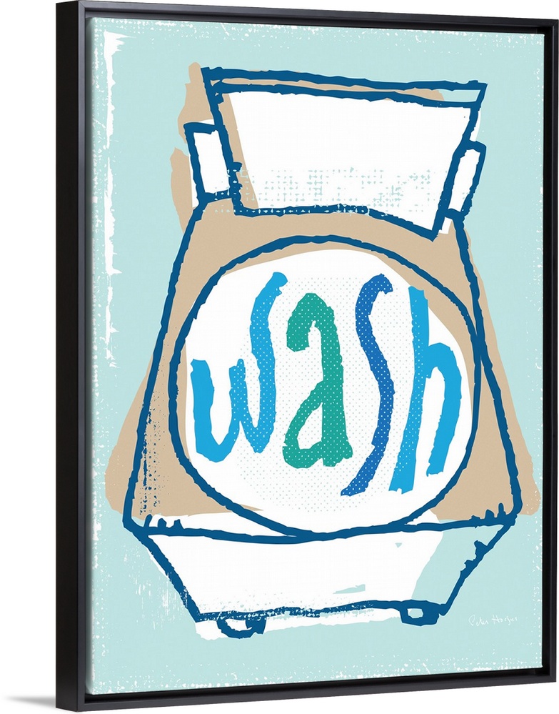 <p>Illustration of a laundry clothes washing machine with the words Wash on it.</p>
