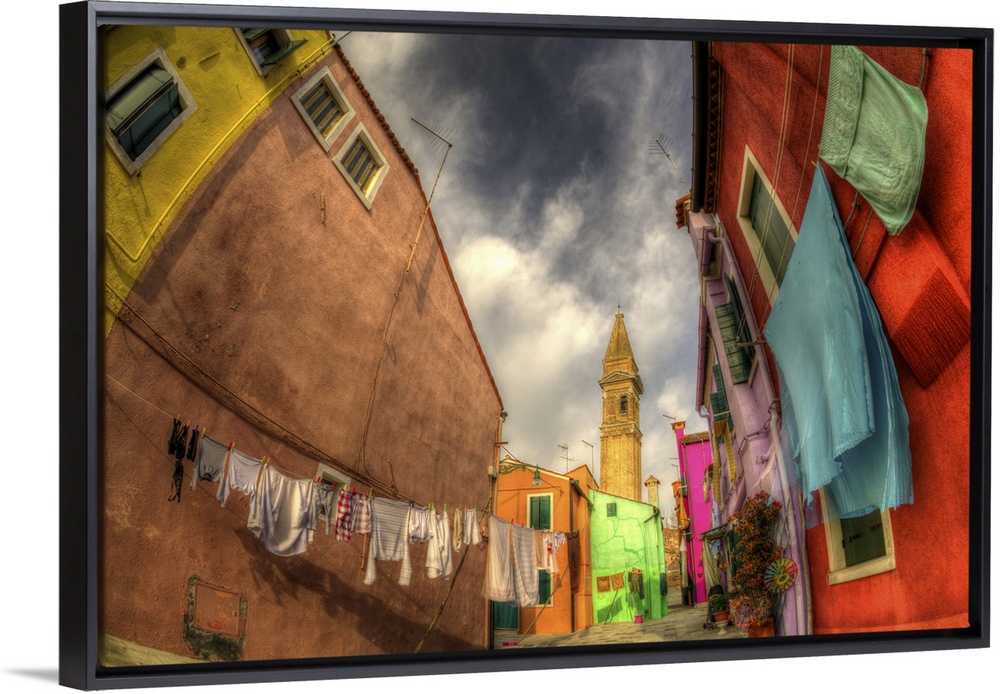<p>Washday in Burano - a small island close to Venice. Taken with a 16mm fisheye lens.The houses are famous for their bright colours.</p>
