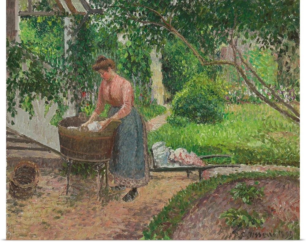 <p>Washerwoman in the garden of Eragny, 1899 (originally oil on canvas) by Pissarro, Camille (1830-1903)</p>