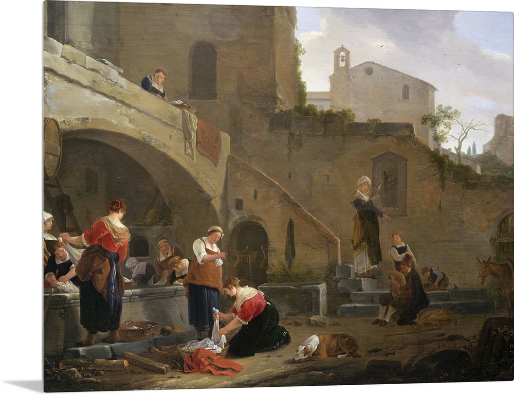 <p>BAL37953 Washerwomen by a Roman Fountain (oil on canvas) by Wyck, Thomas (1616-77); Rafael Valls Gallery, London, UK; English, out of copyright</p>