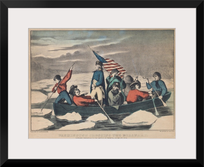 <p>Washington Crossing the Delaware on the Evening Previous to the Battle of Trenton, December 5th 1776, 1857-71 (originally hand-coloured lithograph) by Currier, N. (1813-88) and Ives, J.M. (1824-95)</p>
