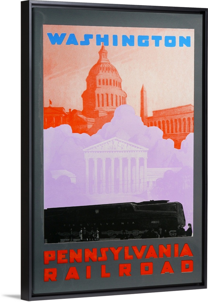 <p>Contemporary artwork of a travel poster for Washington DC via the Pennsylvania Railroad.</p>