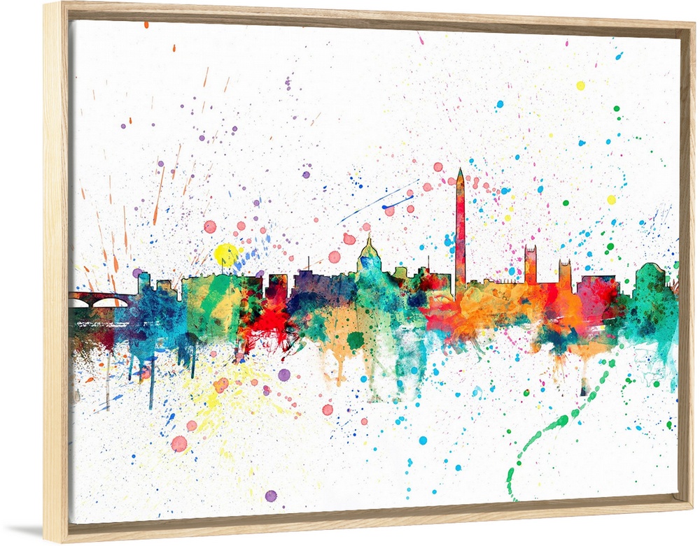 <p>Wild and vibrant paint splatter silhouette of the Washington DC skyline.</p>
