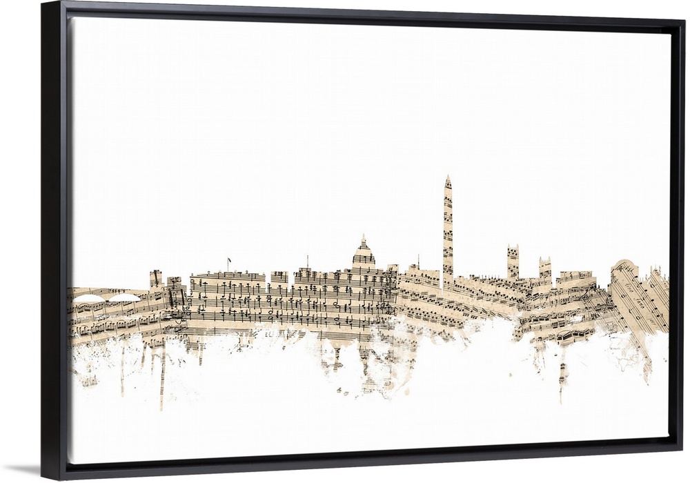 <p>Washington DC skyline made of sheet music against a white background.</p>