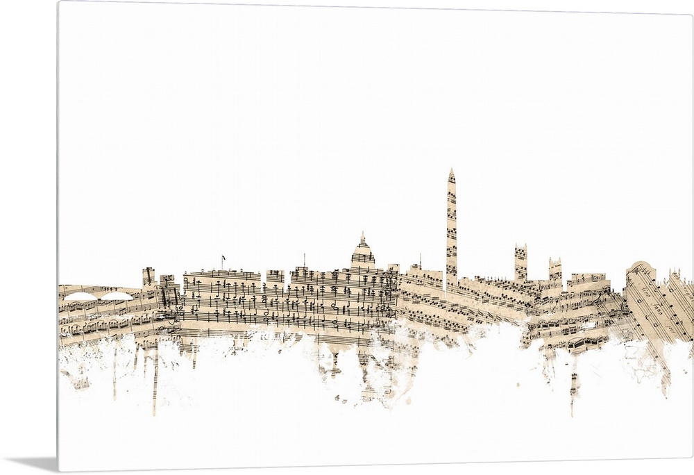 <p>Washington DC skyline made of sheet music against a white background.</p>