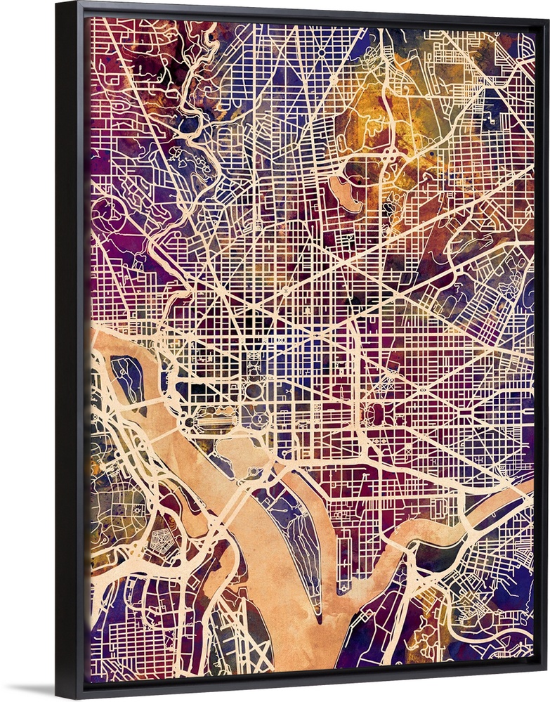 <p>Contemporary watercolor city street map of Washington DC.</p>