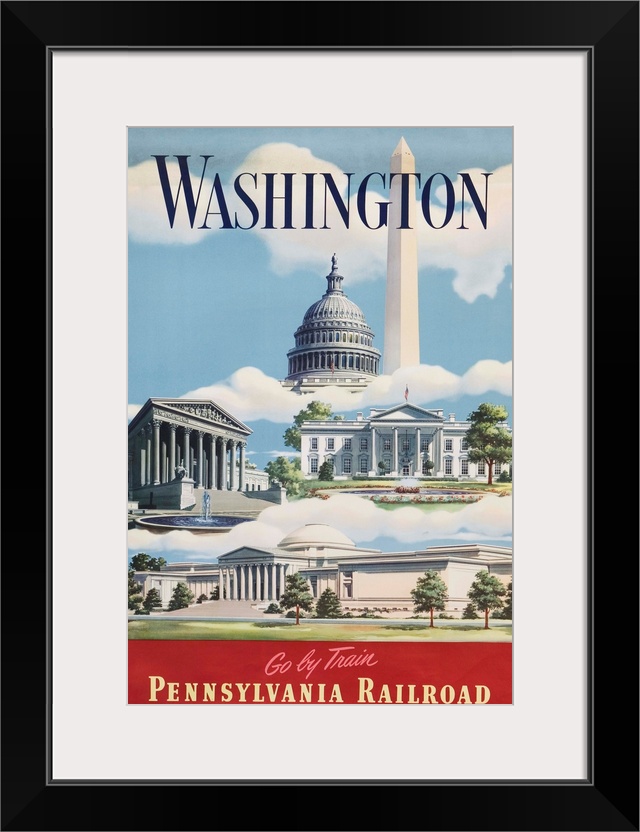 Art KJ Historical Washington DC US Capitol Building Washington Monument White House Train Travel Posters Vintage Travel Posters Vintage Art Travel Advertising